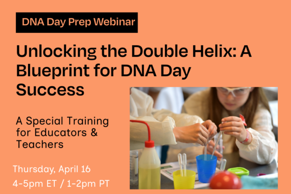 April 16, 2026, 4-5 PM. Afterschool and summer programs can make DNA Day an exciting hands-on learning experience for youth. Join this free educator webinar on April 16 to explore ready-to-use DNA activities, free resources, and simple facilitation tips that help bring genomics learning to life across grade levels and learning settings. No advanced science…
